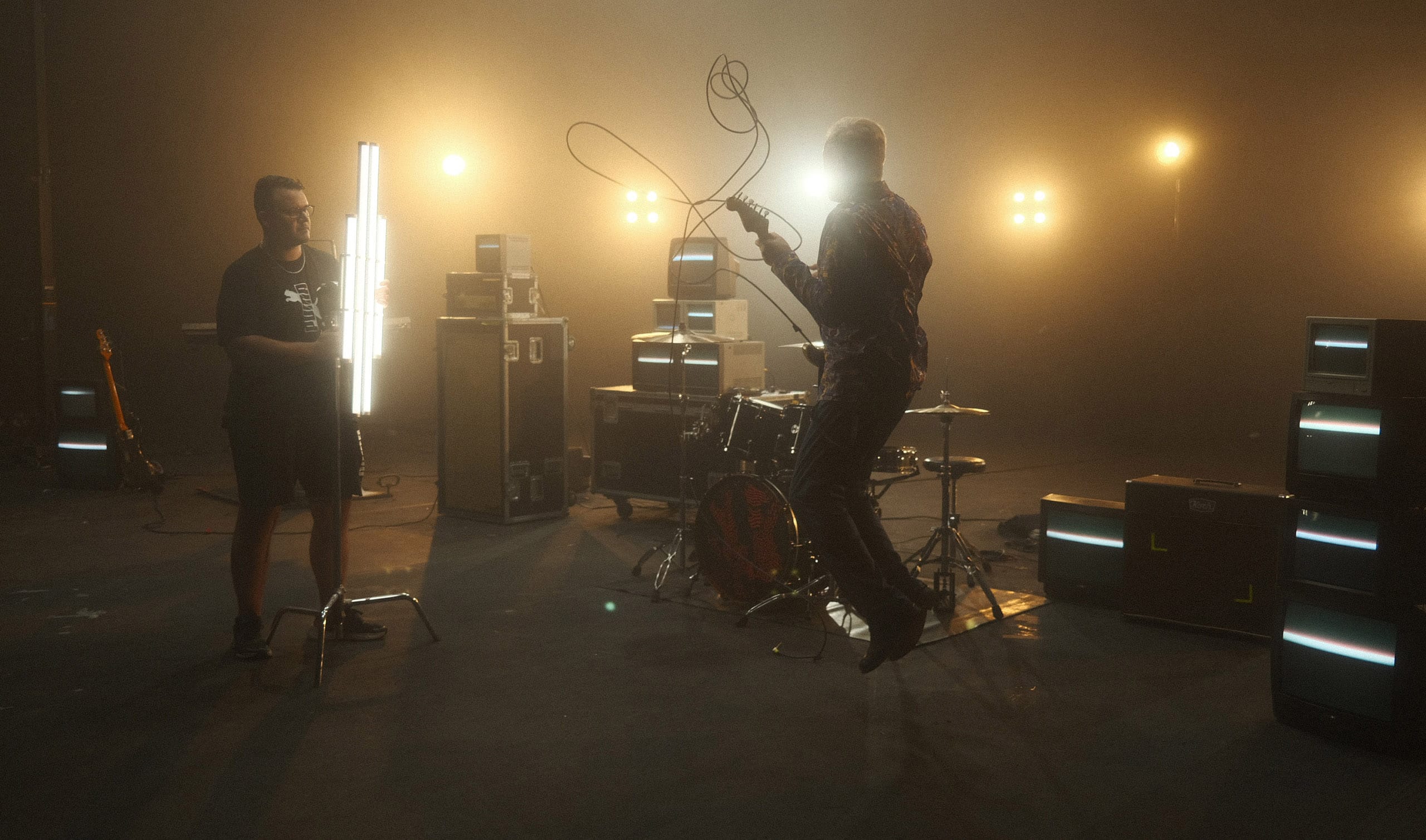 Ripreso con tutto il nostro arsenale di telecamere e ottiche Arri Alexa Mini LF, Ursa Mini Pro 12K, Ember Freefly, con le Nisi Athena, Dulens, Chiopt, Laowa OOOM, e Viltrox Anamorfiche, per illuminare lo studio vuoto Alessandro Mattiolo ha usato Litepnels Gemini sul soffitto e Nanlite forza 720 ed Evoke sui fondi per gestire le immagini a 800FPS con utilizzo di accecatori da concerto per riempire, il tutto gentito in DMX con Gaffer Control